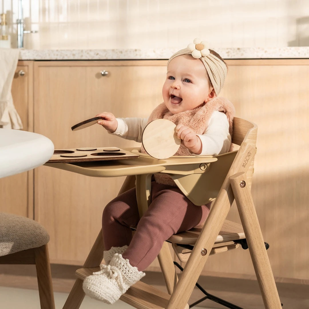 KLAPP boylin heldur barninum tryggum, meðan KLAPP borðið gevur barninum sítt egna pláss til mat og spæl. Saman gera tey borðstólin til eitt trygt og barnavinarligt stað, sum stimbrar sjálvstøðugleika og menning. Borðið er lætt at seta á og taka av.