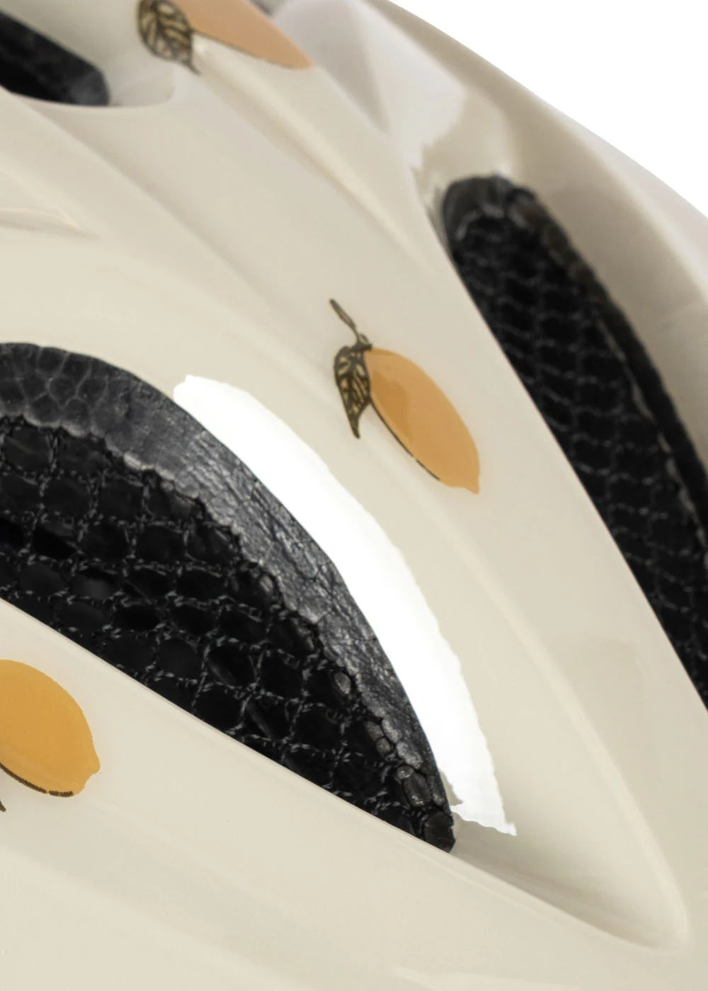 Innan hevur hjálmurin mjúka fóðring og klassiska spenni, sum tryggjar, at hann situr væl. Ætlaður børnum tá tey súkkla, rulliskoyta, brúka skateboard ella rennihjól.