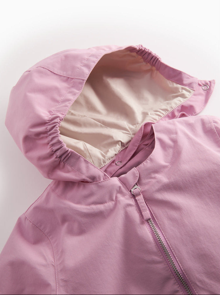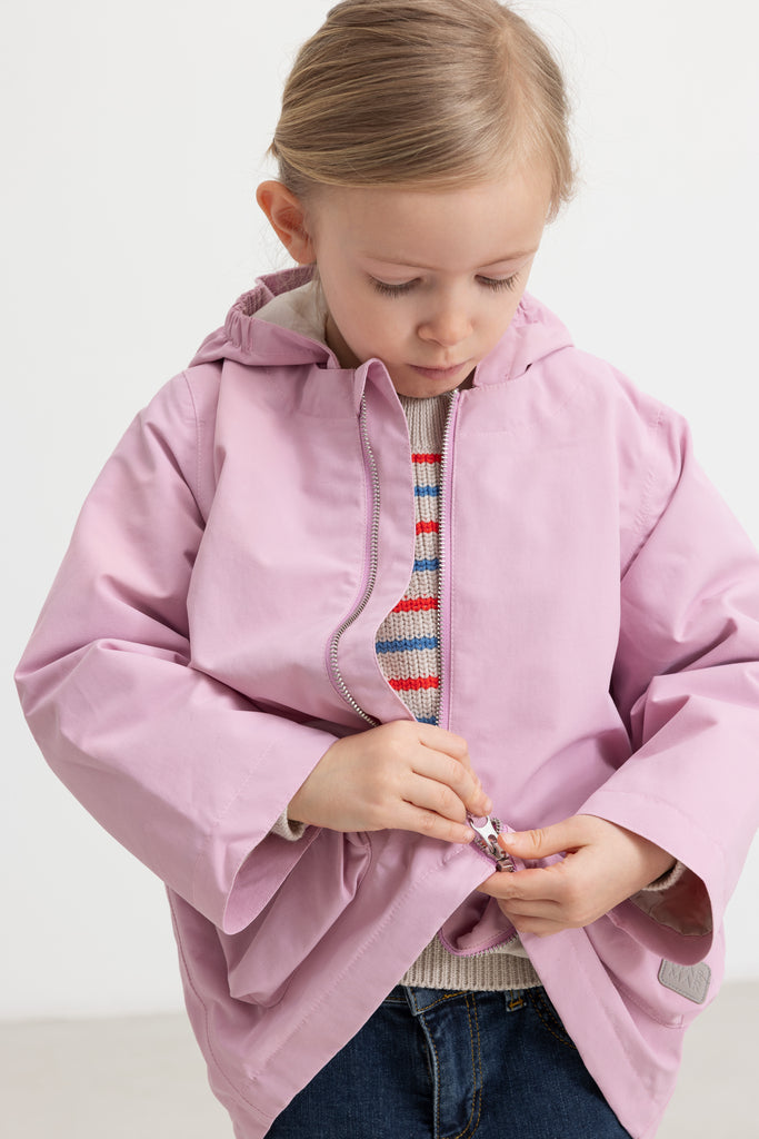 Lættur og praktiskur jakki, sum er vatntættur við vatnsúlutrýsti á 8.000 mm og andar 5.000 g/m²/24t, so barnið hevur tað turt og behagiligt allan dagin. Hann hevur tveir rúmligar lummar, avtakiliga húgvu og YKK-lynslás.