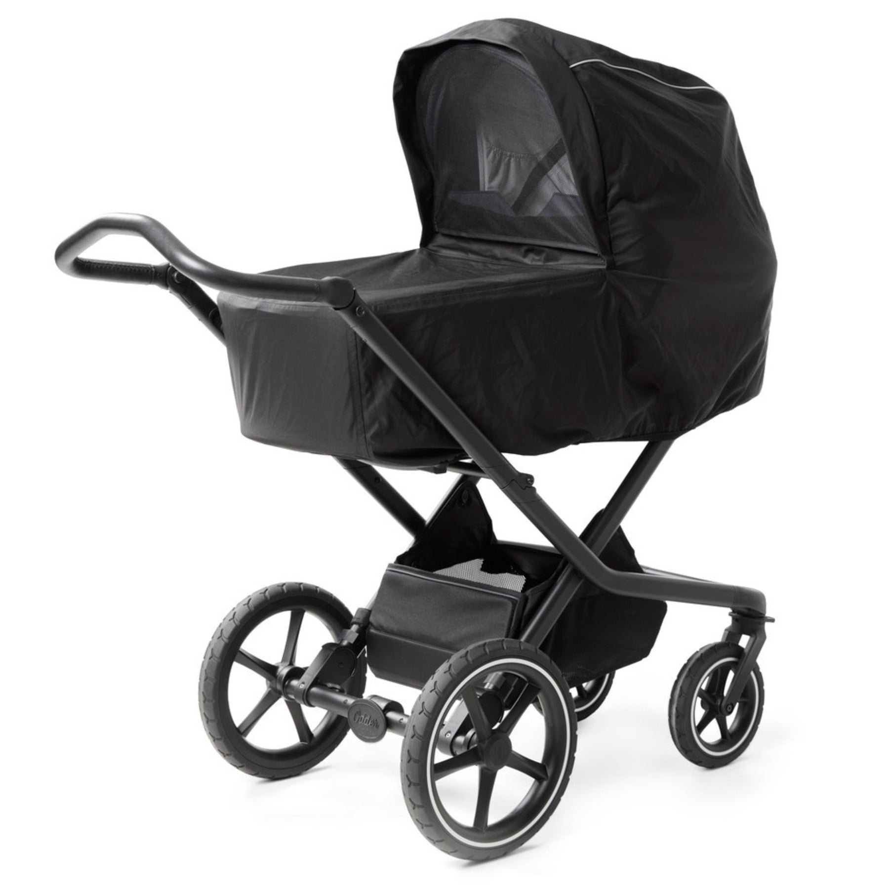 Sterkt og umhvørvisvinarligt regnslag úr 100% endurnýtslu-polyester. Hóskar til barnavognar við liggimáti á uml. 97 cm.
