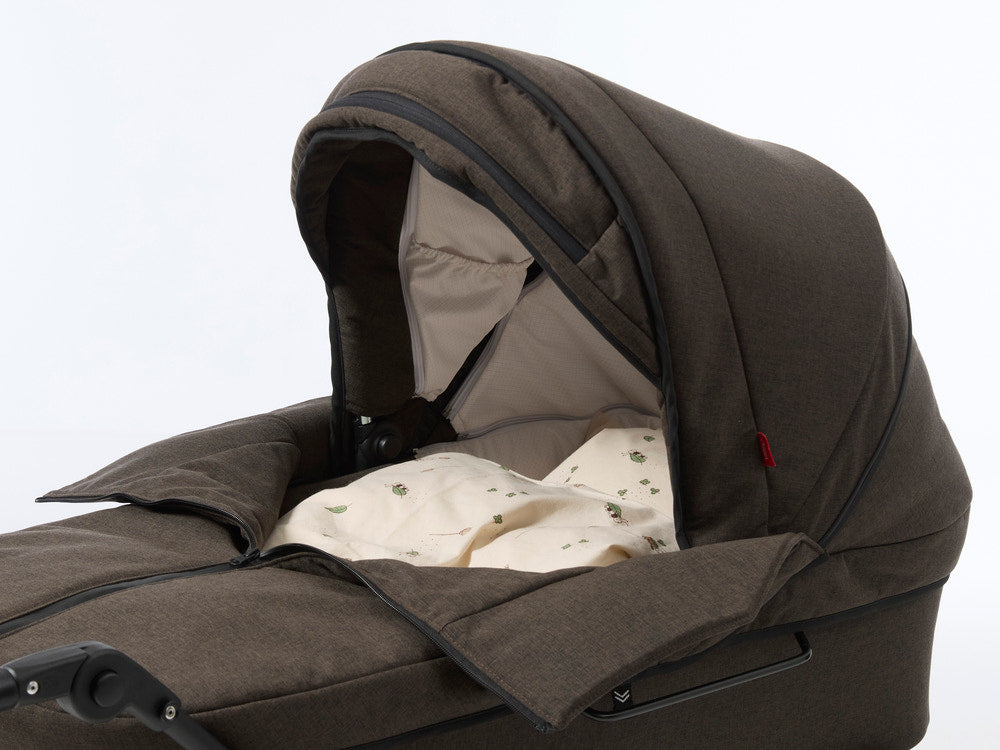 Odder North er ein sterkur og stílfullur barnavognur til alt slag av veðri! Klæðið uttan er framleitt úr endurnýtslu-polyester, og er vatnavvísandi og andar væl, so barnið hevur tað gott í øllum veðri.