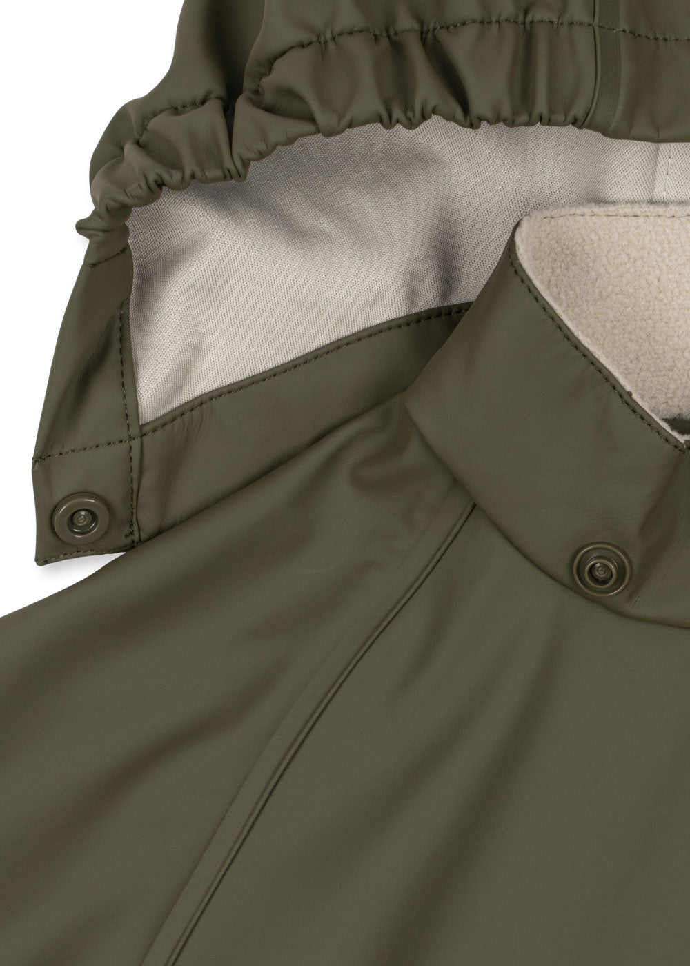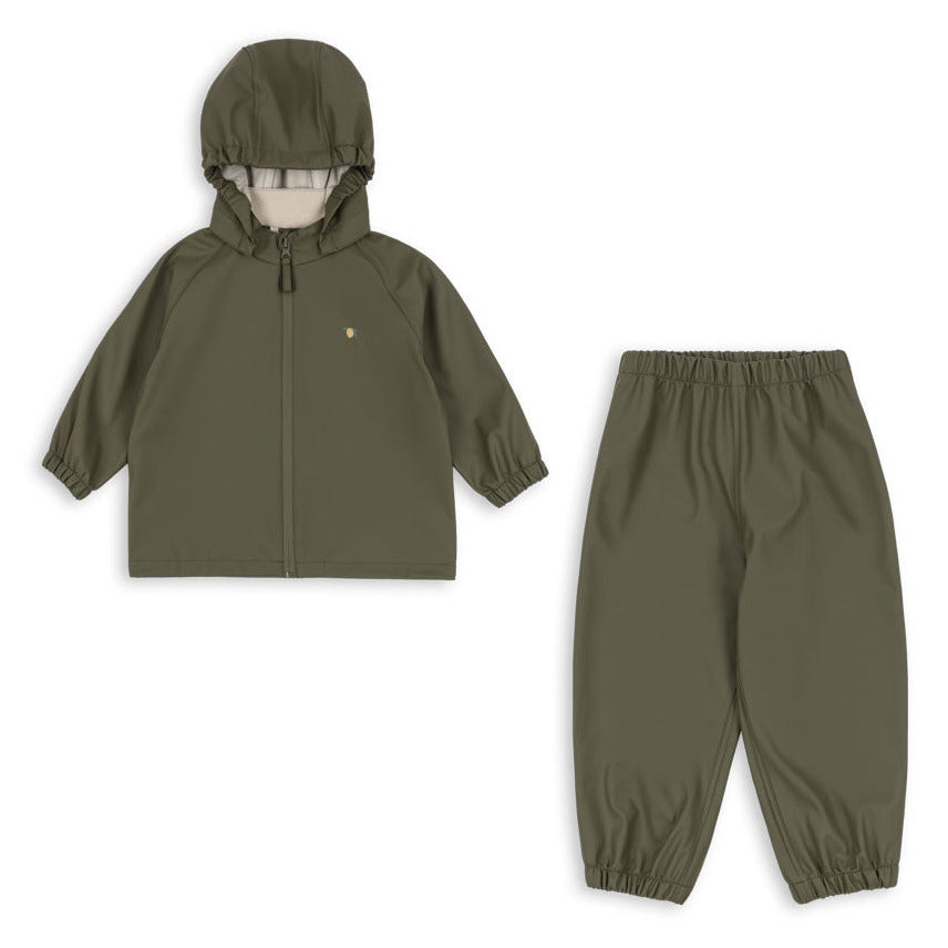 Løtt og vatntøtt (10.000 mm) regnklæði til praktiskt gerandisbrúk. Regnsettið er sniðgivið við hettu sum kann takast av, elastiskum ermum og samansmeltaðum seymum, sum tryggja fulla verju móti vindi og regni.