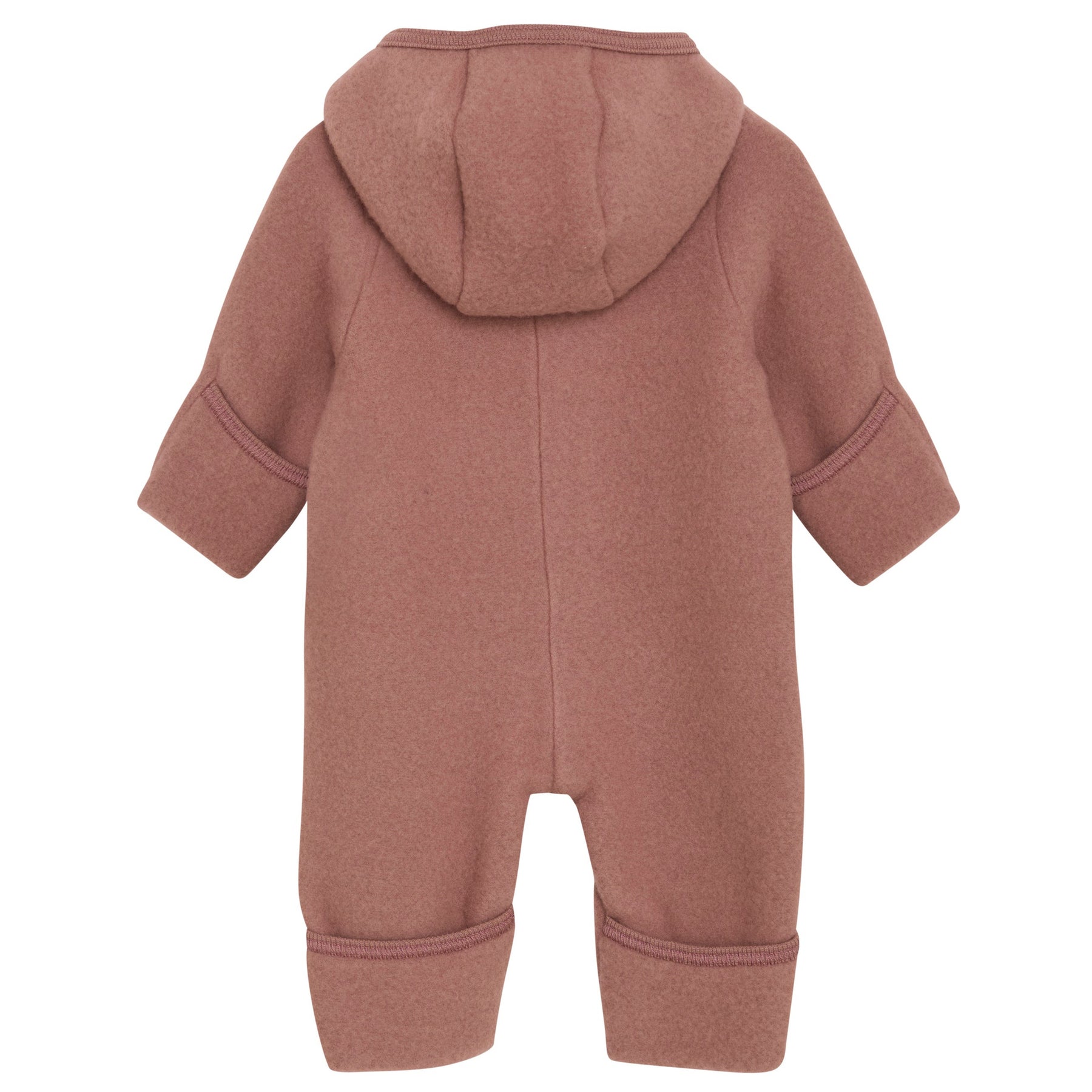 Snøgg og heit drakt úr merinoull frá HUTTEliHUT. Upp til stødd 80 eru praktiskar vendir í ermunum og við beinini, so smáar hendur og føtur halda sær heitar.