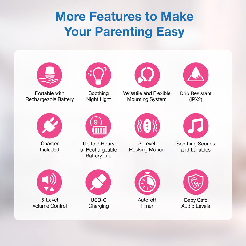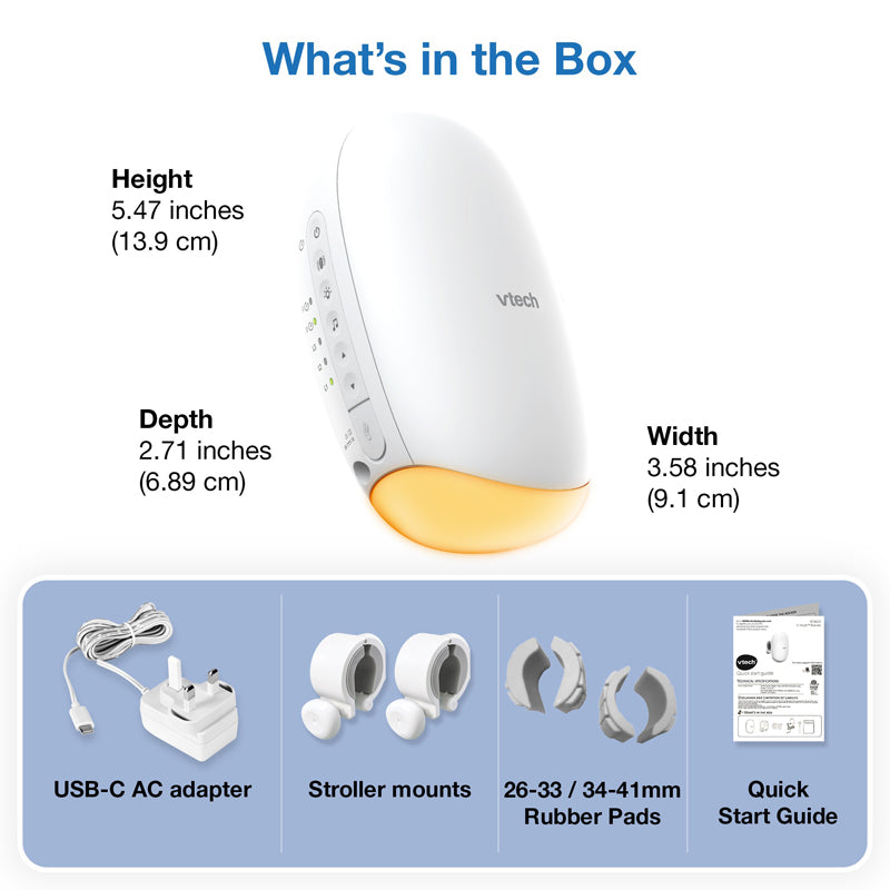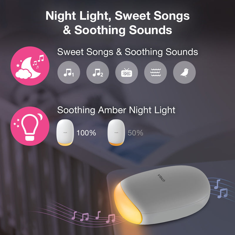 Tú kanst velja millum vøgguvísur og sissandi ljóð, við ljóðstyrki sum kann stillast, og eitt gult náttljós, sum gevur eitt mjúkt ljós í myrkri. Hann hevur innbygt uppløðiligt battarí, sum røkkur upp til 9 tímar, og kann løðast við USB-C.