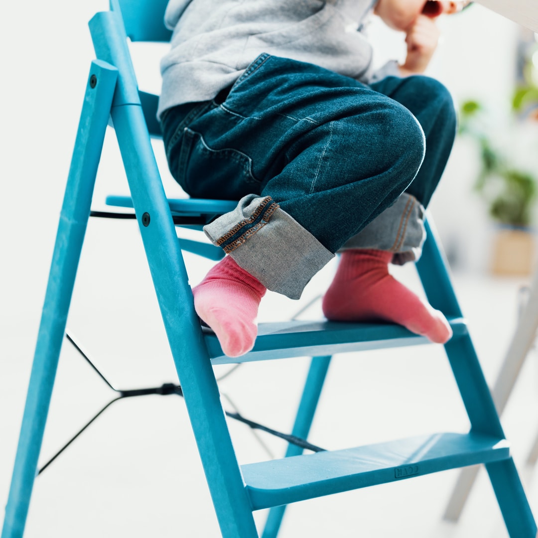 Borðstólur, sum kann klappast saman og brúkast til allar aldrar. Sniðið er trappu inspirerað, soleiðis at barnið kann sita natúrligt og ergonomiskt – uttan at nakað skal stillast.