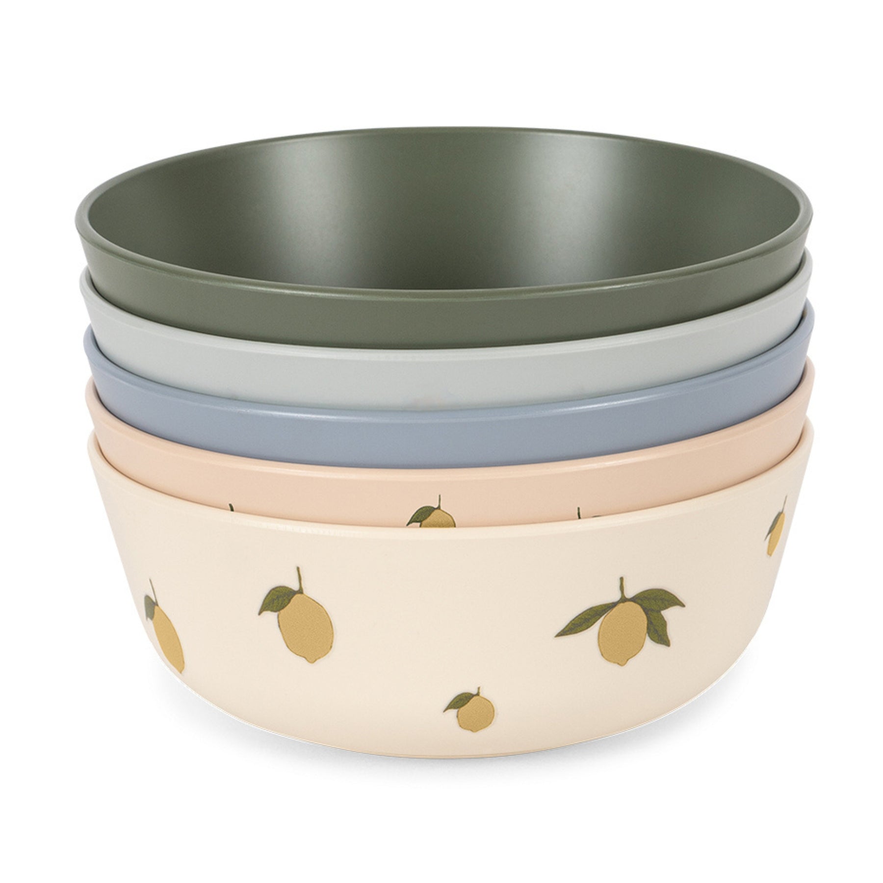 Praktiskt sett við fimm skálum, gjørdar úr endurnýttum PET. Tær tola hitastig frá –20 til 100 °C, kunnu setast í mikroovn og vaskast í uppvaskimaskinu.
