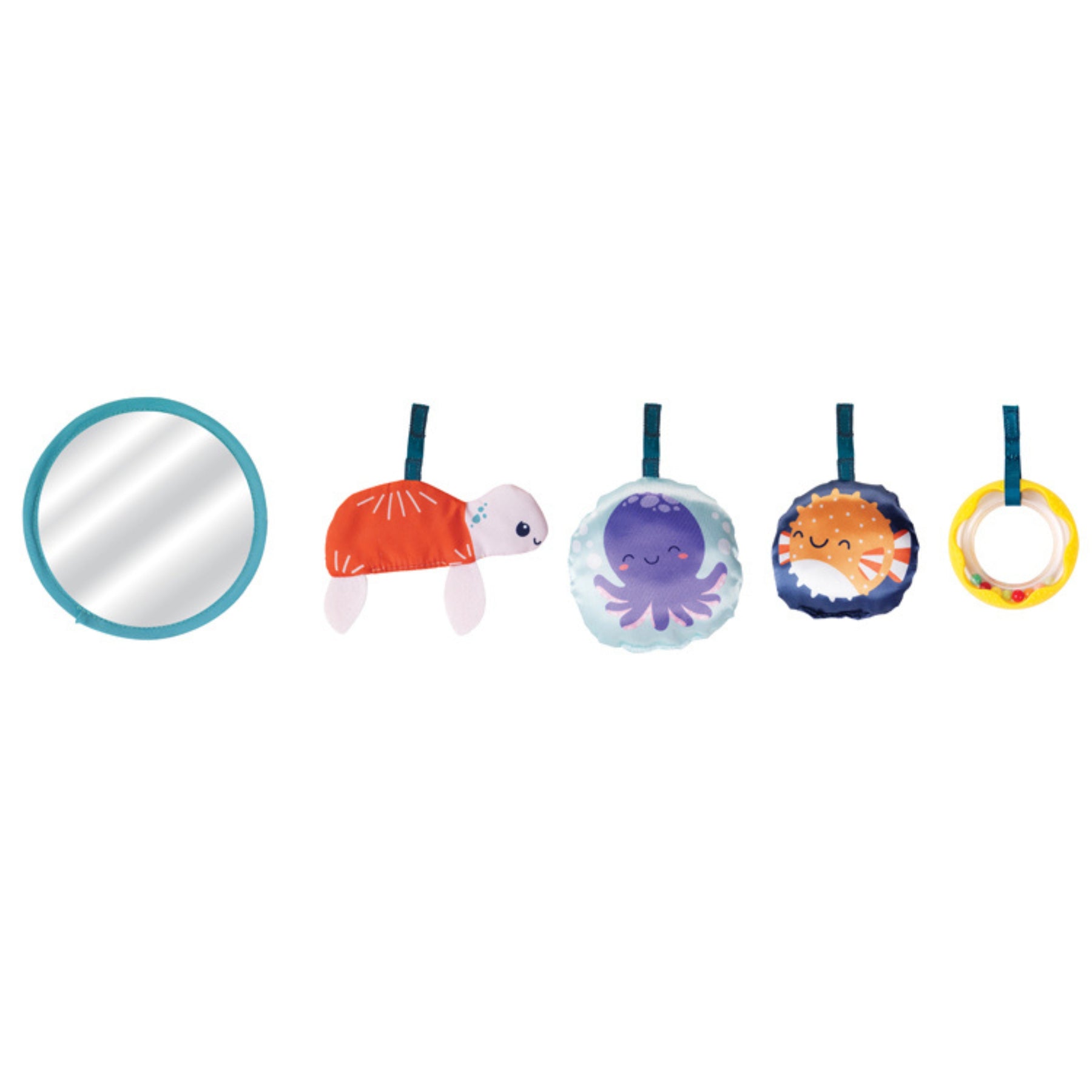 Leikurnar kunnu takast av og nýtast fyri seg, og teppið kann brúkast bæði til at liggja á rygginum, á búkinum ella at sita við.