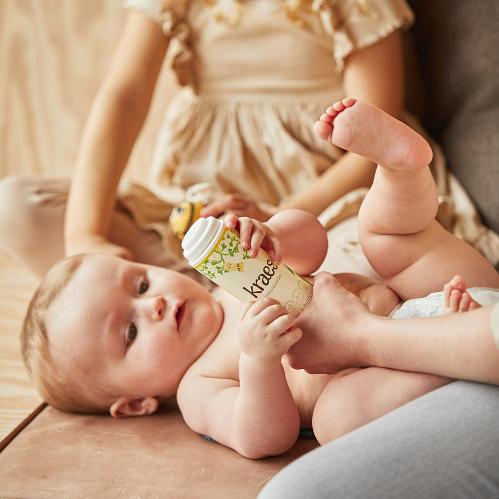 KRAES náttúrputur er eitt mjúkt og milt putur, sum hjálpir at halda húðini turra og væl varda. Tað er serliga gott at brúka í blæuøkinum og í húðfaldum, har húðin lættliga kann gerast reyð og eym av fukti og gníggjan.
