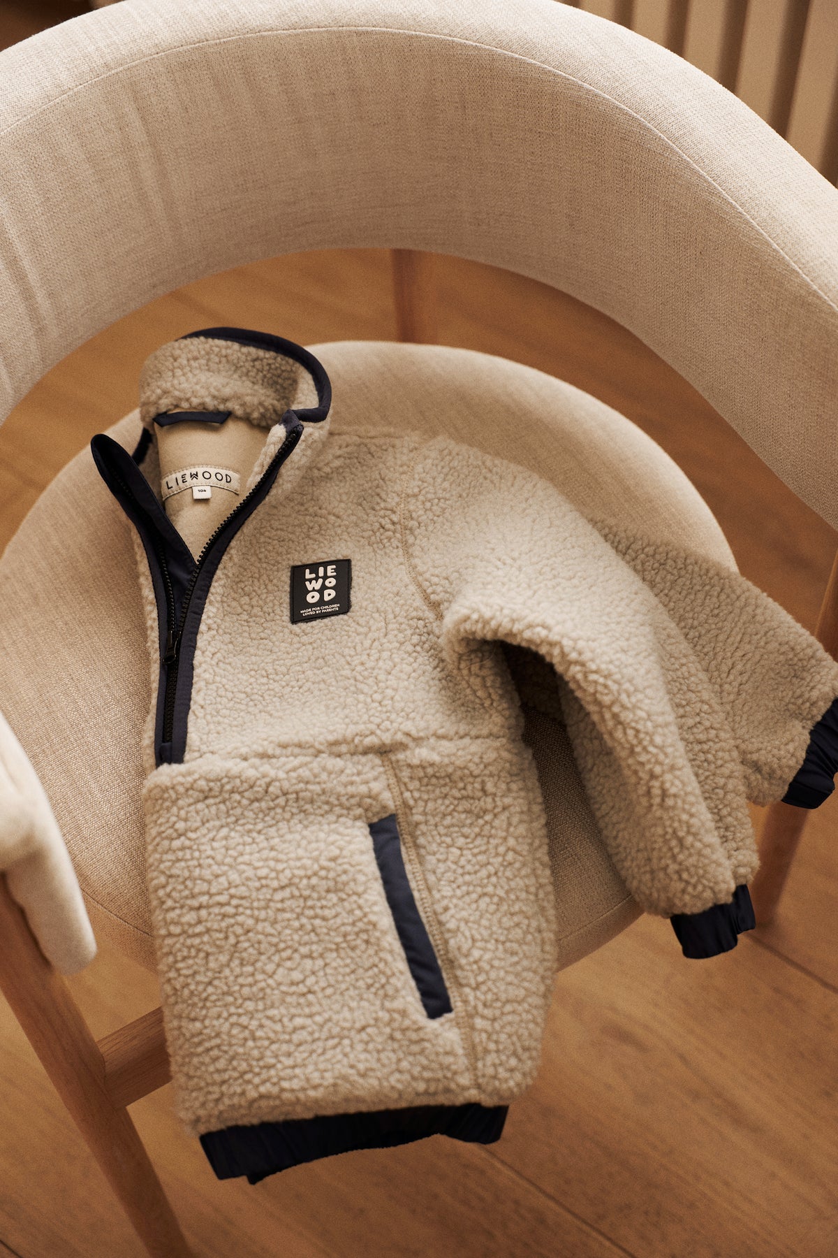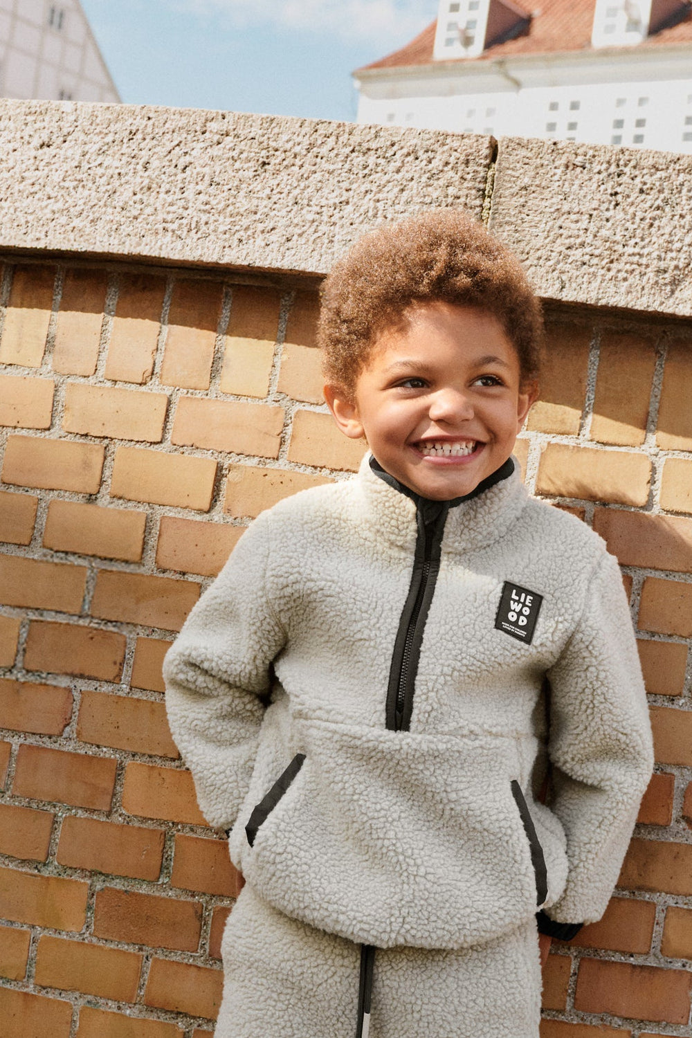Balou flistroyggjan er ein lekkur og mjúk troyggja, sum hóskar væl til gerandisdagar og skiftandi veður. Hon er gjørd úr GRS- og OEKO-TEX®-góðkendum endurnýttum polyester og hevur eitt snilt hol í ermuni til tummilin, so hon situr væl og heldur hitanum.