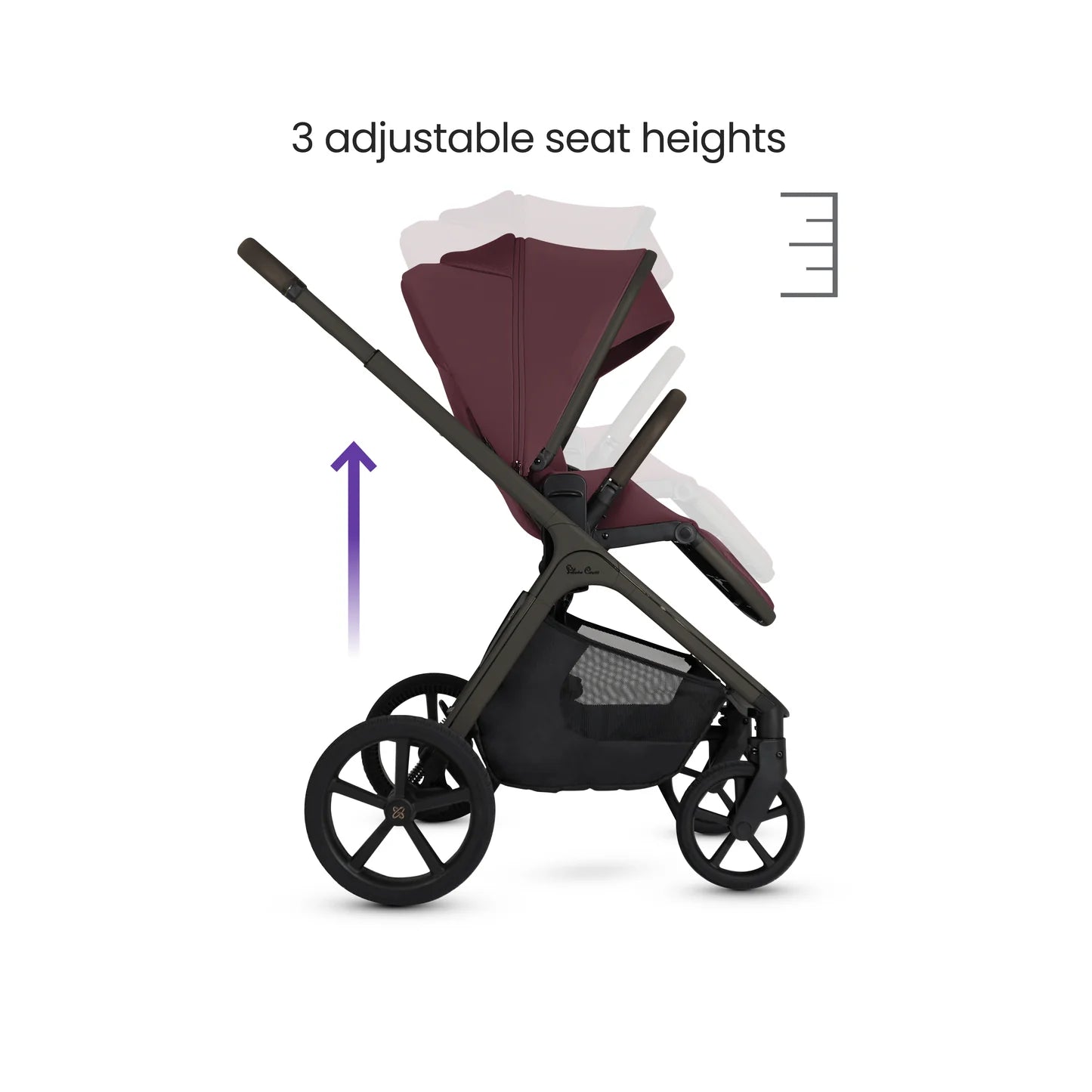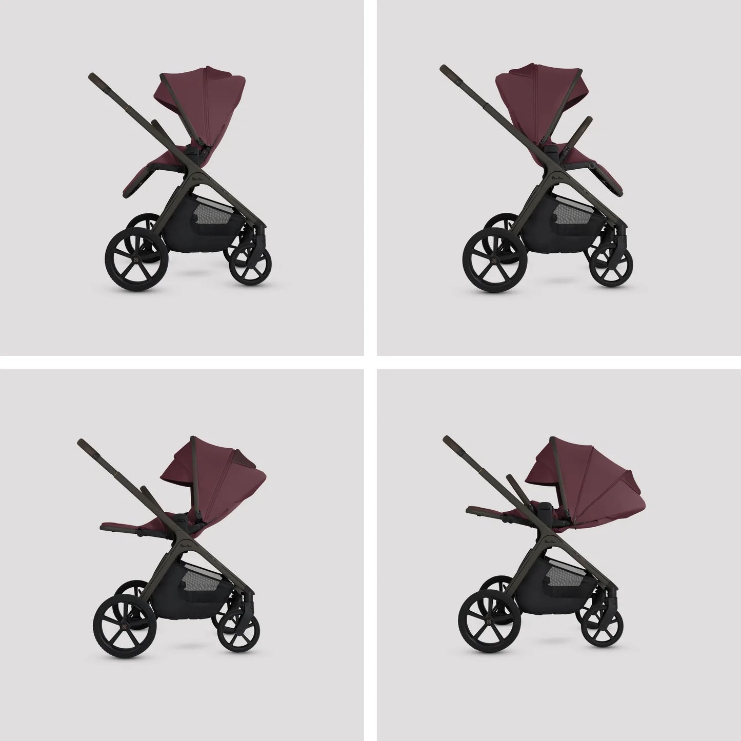 Hæddin á vognkassanum/setri kann stillast í til 3 ymiskar hæddir, so tú kanst hava barnið nær og í eygnahædd, og setrið kann vendast soleiðis at barnið hyggur antin fram- ella aftureftir.