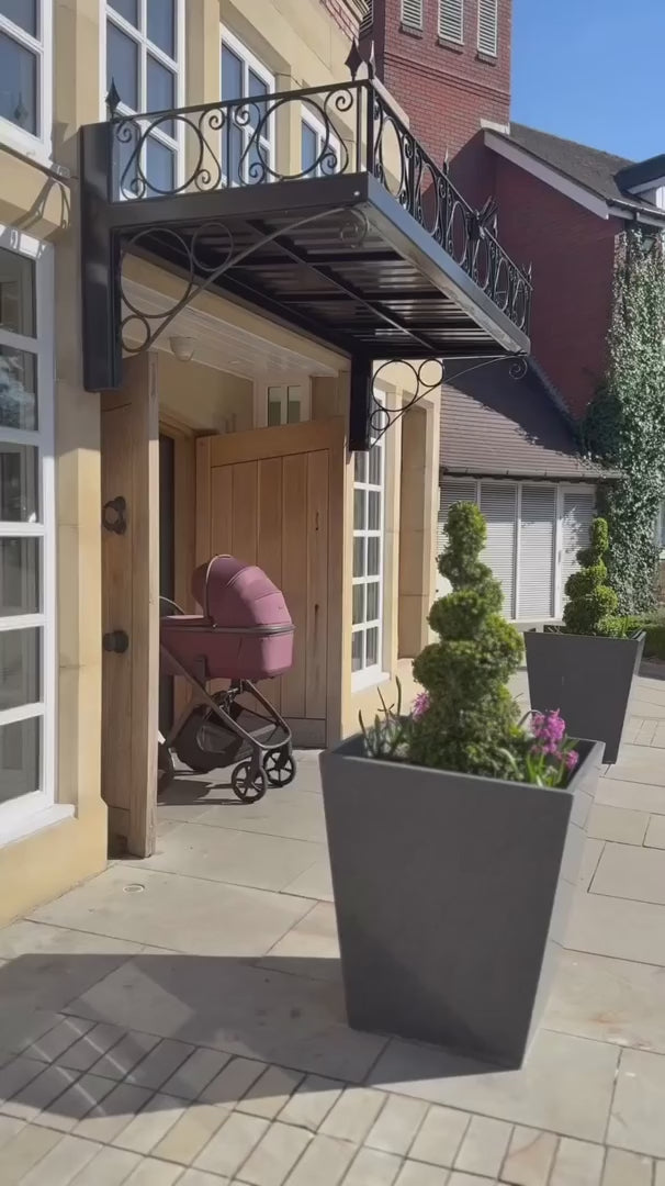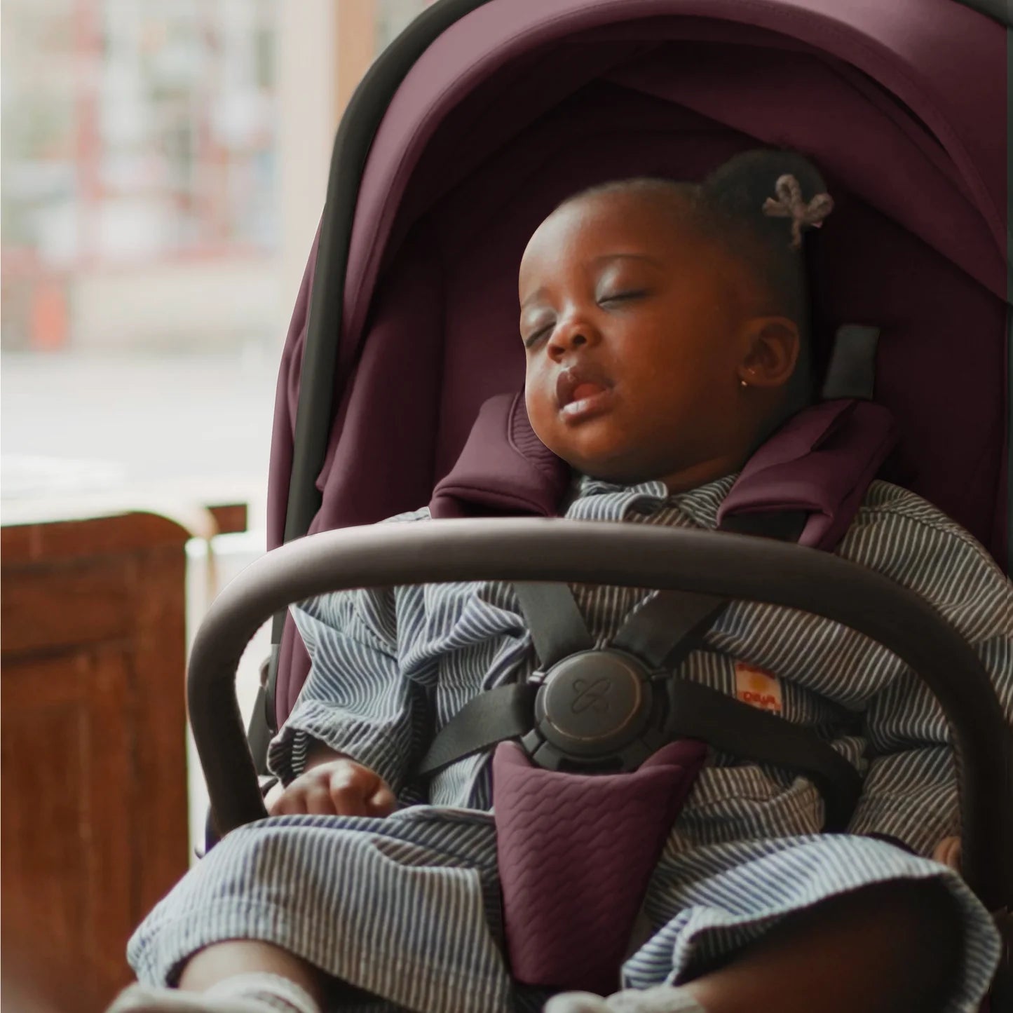 Kallesjan er stór og hevur UPF50+ sólverju. Kallesjan kann eisini stilllast í hæddini, so setrið kann tillagast hæddina á barninum.
